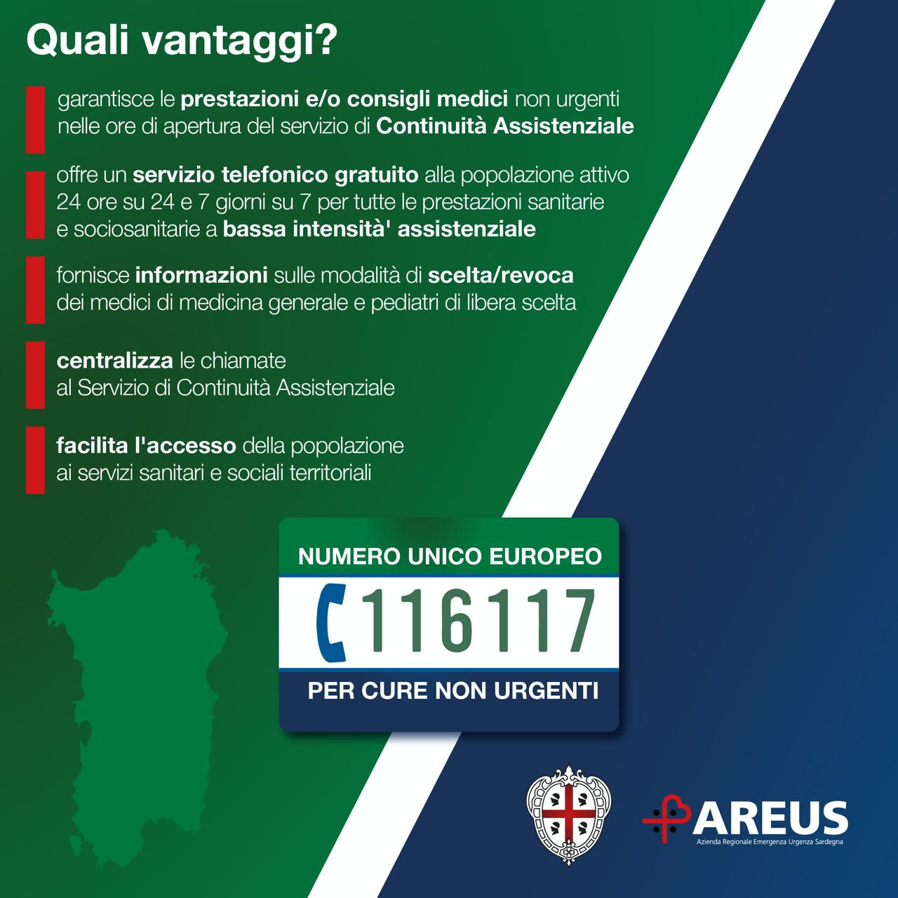 Carbonia, 11 settembre 2024 – Operativo dalle ore 20 di ieri sera (10 settembre 2024), il nuovo Numero Europeo Armonizzato (NEA) 116117 per le Cure non Urgenti, che in questa fase riguarderà solo i 23 Comuni afferenti alla Asl Sulcis Iglesiente (Distretti di Carbonia, Iglesias e Distretto delle Isole, prefisso 0781).